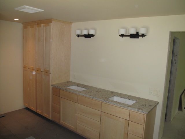 The entire view of the master bath vanity, linen closet, and lights I tied to